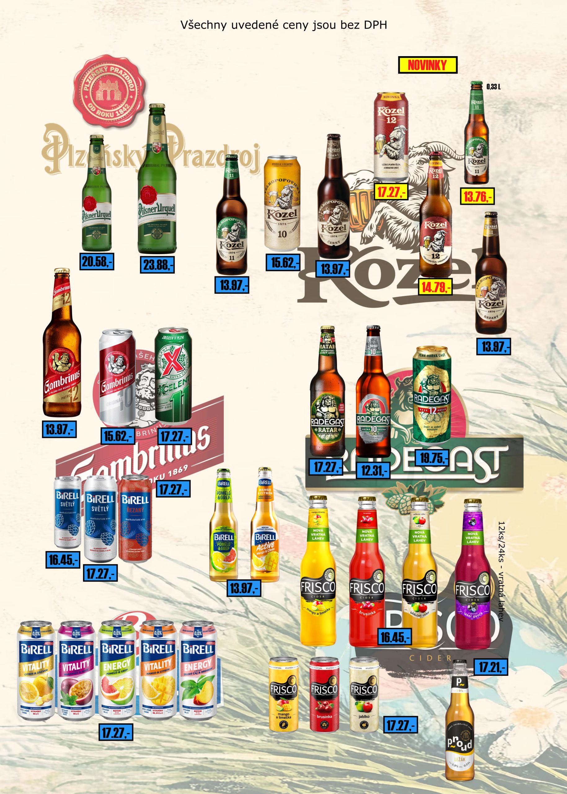 | 4131029 | Birell ochucený 0,33 l sklo | 24 | ks | 21% | 13,97 | 16,9 |